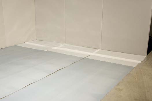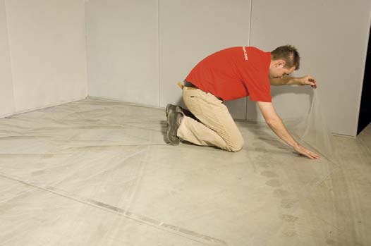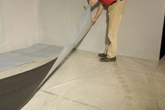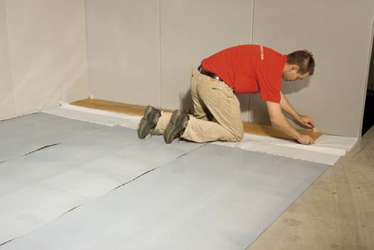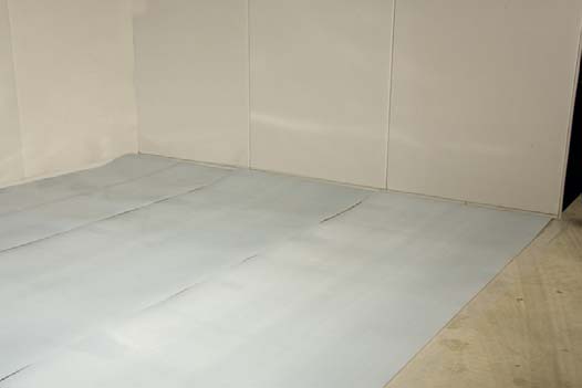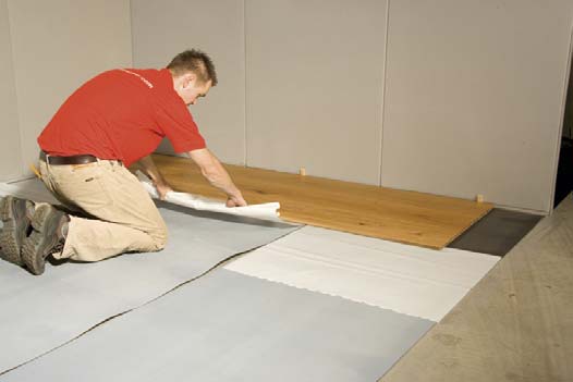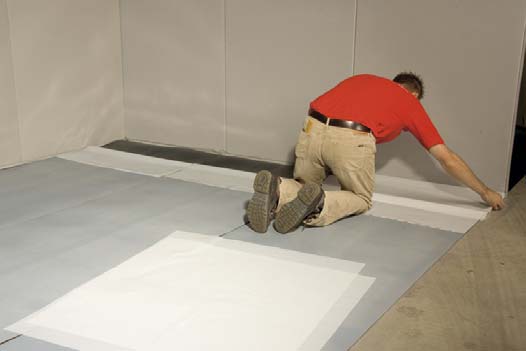 1. Uložte PE protivlhkostnú zábranu na podkladovú podlahu v pásoch s prekrytím 20-25cm